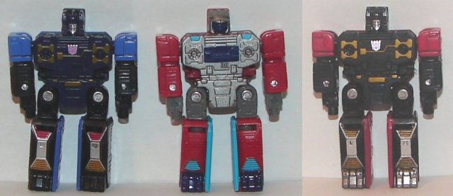Frenzy, who is blue, and thus actually Rumble is a repaint of Siege Rumble (Actually Frenzy). Knok is a remold of Rumble (Actually Frenzy) with a new head. They have no meaningful alt mode, transforming into purposeless rectangles. Knok is supposed to be one of Doubledealer’s partners, but Hasbro couldn’t bother to include Knok with him.
