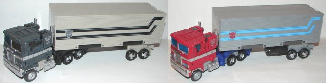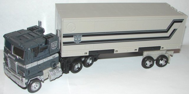 Overall: This is not a bad toy, but it certainly feels like Hasbro didn’t know what else to use the mold for. They could have done The Return of Optimus Prime Optimus Prime in white, The Golden Lagoon Optimus Prime in gold, or give him a movie style paint job. I’d kind of like a G1 style Optimus Prime in movie Optimus Prime colors. The flames would look great, and you could do a lot with them on the trailer. These things would have taken imagination, and Hasbro’s clearly ends with, “I know, we can plaint it black!”