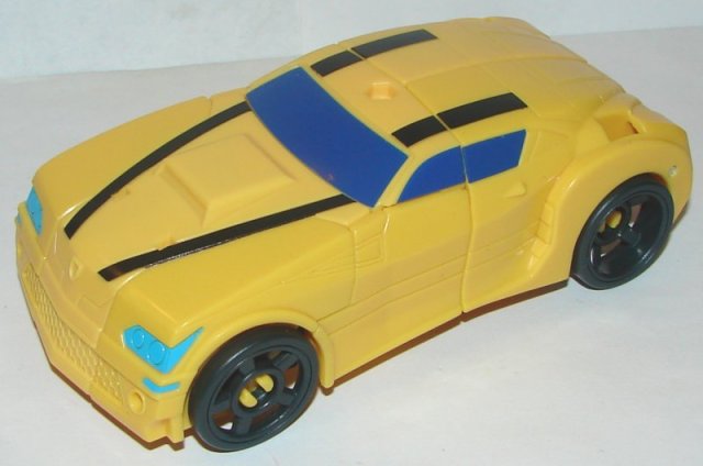 Vehicle Mode: In vehicle mode Bumblebee looks pretty decent. His headlights and front and side windows are painted, but of course, not his taillights or rear window. I forgot to take a picture of him with his armor on in this mode. Basically, you plug his sword in on his roof, and plug the armor on top of that. Looks too stupid to bother digging him out of the box for another picture.