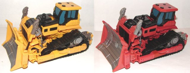 Skipjack is a repaint of Rampage. He can replace Rampage when building Devastator to make him more movie accurate. I think I prefer him in yellow, or maybe it’s just that yellow is a more traditional color for a constructions vehicle. If you look at the black piece that makes up their abdomen, you might notice they are different. Rampage, apparently all of them, were assembled with this piece backwards, so it shows the robot side in vehicle mode and vice versa. I never noticed this when I got Rampage.