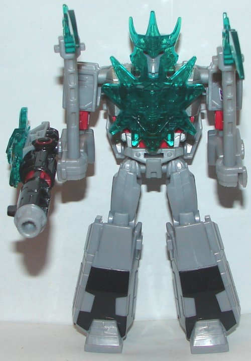Robot Mode: In robot mode Megatron is pretty cool. I’m not a fan of the green chest. I love the Galvatron-ish armor helmet.