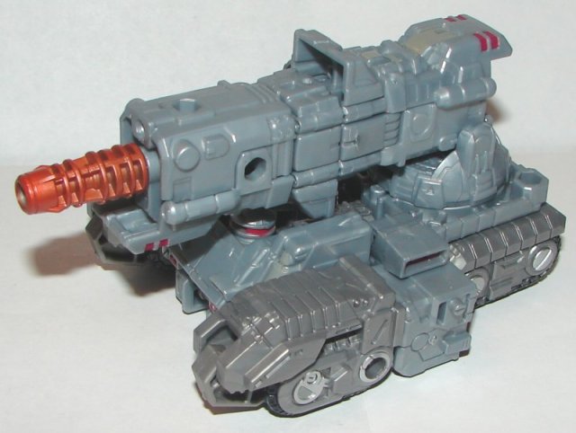 I like the design, but he has no paint job, so Shockwave is crap. I also kind of hate that they put a blast effect peg on the front. He just doesn’t have a traditional gun barrel, and that peg kind of ruins the look.