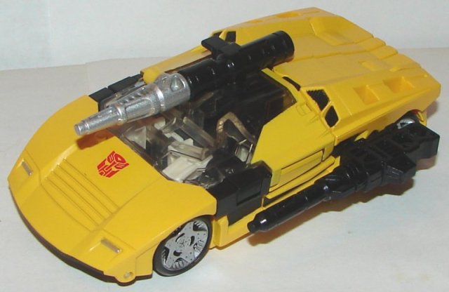 They finally included both guns with Tigertrack. Since this is the fifth use of the mold, and the other four all had weapons left out, it’s kind of hard to care. Of course, he’s still not properly painted, having those black panels on the body at the corners of the windshield. It doesn’t look as bad on Tigertrack because he doesn’t have a black windshield, but it still would have looked better if that part was painted to match the body.
