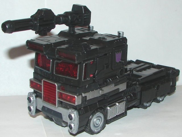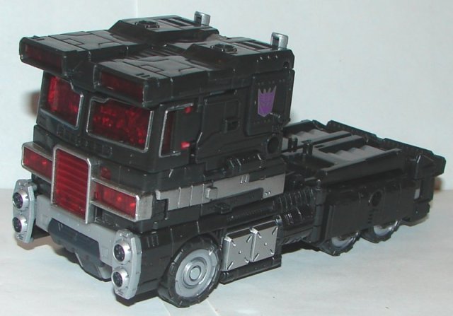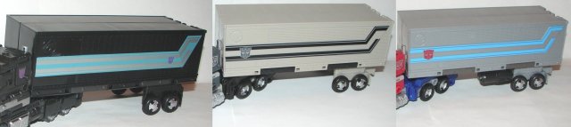 So, Nemesis Prime is probably more appropriately called FrankenPrime, as he is made up of parts from three different toys. His trailer comes from Earthrise Optimus Prime. Hasbro has done a far better job painting it, than they did the original version which omitted the silver completely.