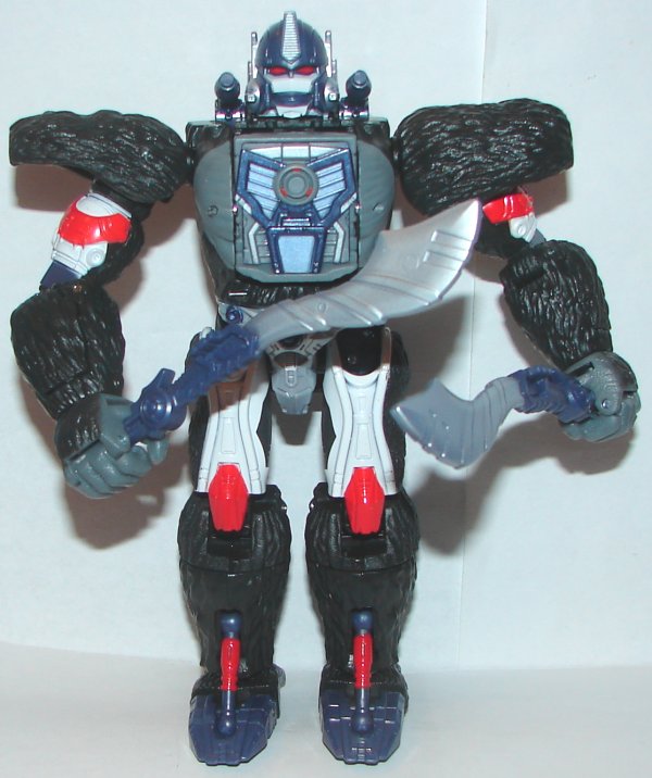 Beast Mode: Optimus Primal’s gorilla mode is pretty well done. When he is standing on two feet, the flap of “hair” hanging down below his waist looks weird.