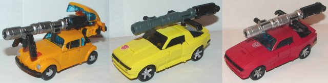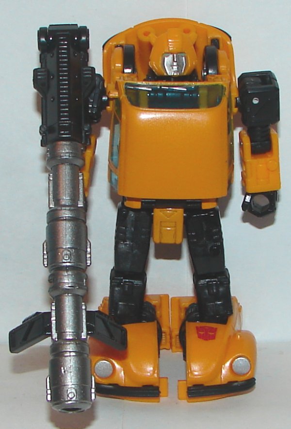 Finding Bumblebee was like trying to find Bigfoot. I finally broke down and bought one of the over 400 hundred of them (I counted) on eBay. About a month later I did finally see one in store the scalpers hadn’t absconded with. I could go on about assholes making toys artificially rare by buying them all up for resale, but they aren’t worth my time. As for Bumblebee, he is awesome! They did an amazing job remolding Cliffjumper. Bumblebee has different wheels, so in vehicle mode, other than his accessories, there in nothing to indicate he is remolded from Cliffjumper. My only complaint, and it’s a small one, is that he has no port on his roof for his weapon. It can only be put on his roof by partially transforming him, which looks pretty silly. In robot mode he looks great. He has perfect head sculpt.