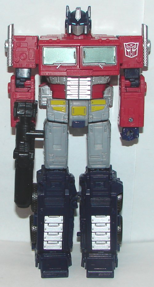 This version of Optimus Prime is only slightly different from the original. Over all colors are darker. They removed a silver paint app from his chest right below his windows. His windows are now clear, and he has much brighter blue eyes. Probably a few more little things I’m not noticing.