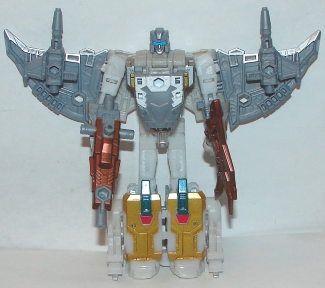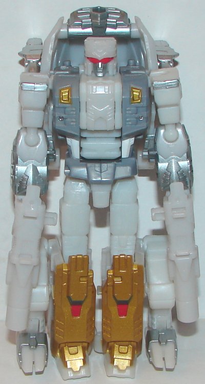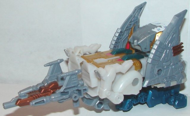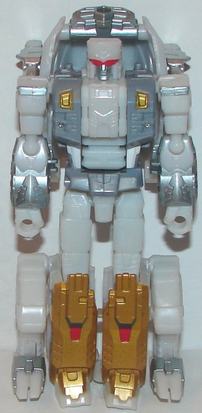 Scylla’s robot mode had been completely remolded, legs, arms, torso, and head sculpt. Formerly a he and now a she, the new molding looks great. My only complaint is her paintjob. I‘m sure it probably accurate to the original, but she just looks boring. In beast mode her face is bronze, and she’s otherwise gray. In robot mode she has just a few gold and silver paint apps.