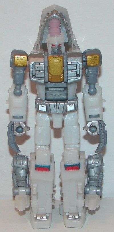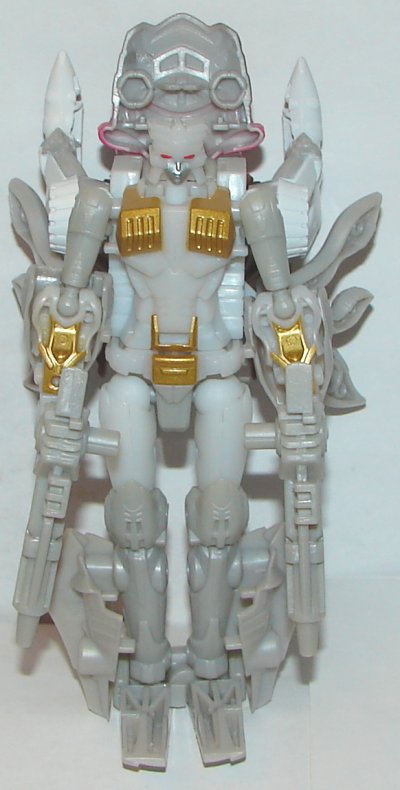 The only mold changes in this set is on Scylla, so I’m just going to focus on the new paintjobs. There is one problem with this set, and it’s not worth repeating in each review. The mold used for their hands seems to be showing some wear. One of the hand’s peg’s is too small for the ports. You can’t make that one a hand, because it will fall right off his wrist. Best you can do is make it the back of his foot, and don’t move him. Also, the joints on the fingers suck. In weapon modes, most of them won’t hold them up properly. I’m not sure how Takara managed to screw this up. Even if it’s just mold degradation, this isn’t acceptable. Takara used to have higher standards, but now they are just as low quality as Hasbro. Also of note is that the instructions do not show their gun modes. Takara didn’t include the parts for the gun modes from the G1 toys in the Beast Wars II release, but it seems pretty stupid not to include that in the instructions now since they have all the needed parts. They also should have included the sixth figure. I know he wasn’t in the original set, but it would have been cool to have him as part of the team at last. Just come up with a name and a deco that matches the set.