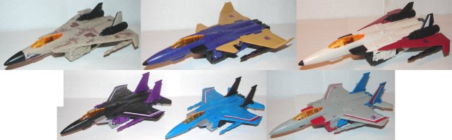 Previous Mold Use: Earthrise Voyager Class Starscream, Earthrise Voyager Class Skywarp, Earthrise Voyager Class Thundercracker, Earthrise Voyager Class Ramjet, Earthrise Voyager Class Dirge