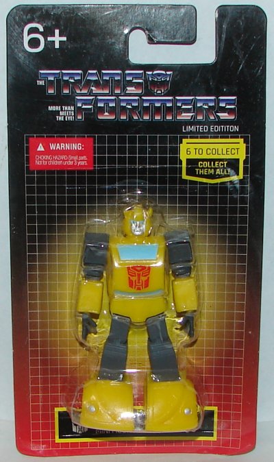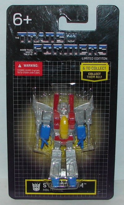 Using the same design at a larger size as the Dollar Tree Bind Bag Figures, these six individually carded figures showed up at discount stores. I am assuming at Dollar Tree, since they had the last ones. They still have the creepy weird open hands. Transformers should always have closed fists. The hands look bizarre, but they are pretty cool otherwise, though Starscream, for some reason, has a silver head which looks weird.
