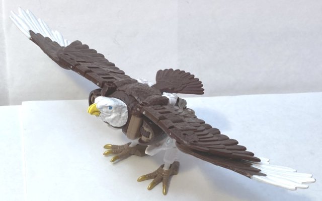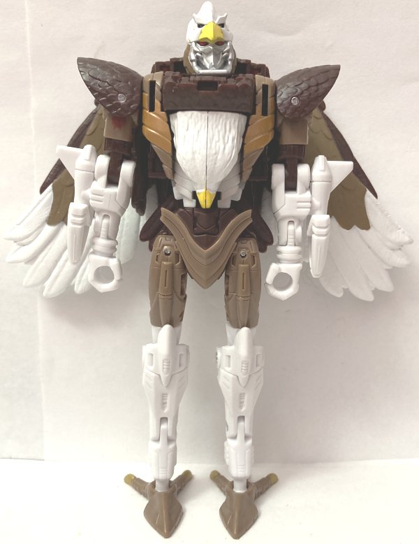 Skywarp, originally known in he USA as Silverbolt, is a falcon painted as an eagle. They’ve gone with his Takara name. If you are not familiar with Beast Wars Skywarp, he was one of the members of Combiner Magnaboss. He’s fine in beast mode, but he’s clearly not an eagle. In robot mode his head sculpt is based on the Japanese animated series Skywarp.