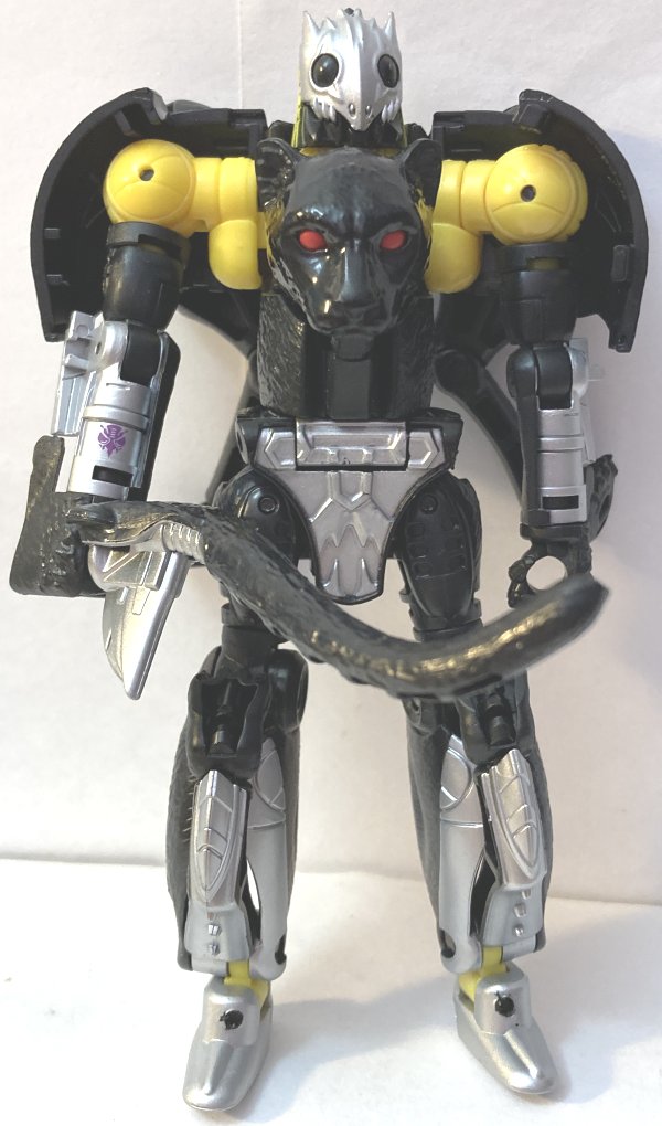 Shadow Panther has a head sculpt based on Cheetor’s original mutant head. I wish he had Cheetor’s standard head repainted. Other than that he looks fine, but I wish his shoulders were black instead of yellow. I know the original had yellow also, but I think it looked better on the original mold than this one.