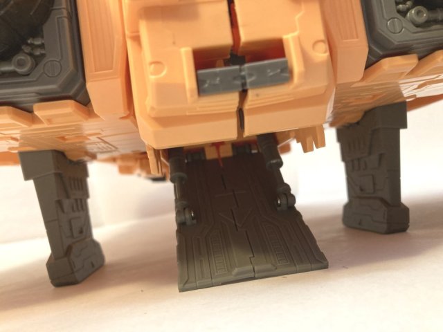 Vehicle Mode: The Ark looks fantastic. He has great paint apps. I love the guns all over him. Some have complained about the open areas on the sides toward the back. They aren’t wrong, but I don’t think it looks too bad. You can open the top the see the bridge, but it is sized to the tiny Optimus Prime, so really, what good is it?