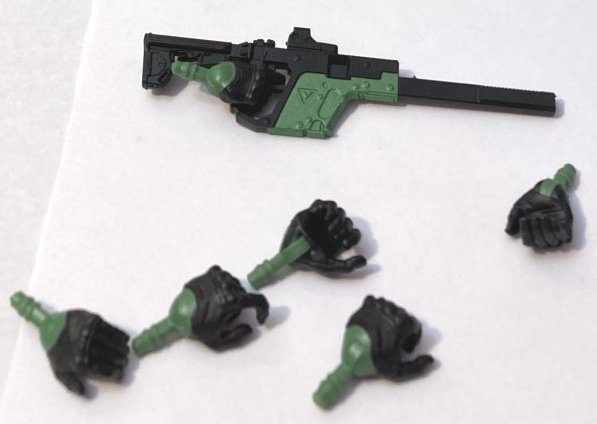 Unfortunately, I was unable to get his freaking hands out to put in the hands he can hold his guns and knife with. Admittedly, I’m not possessed of a great deal of upper body strength. Kermit the Frog has bigger arms than I do. But I’ve never been unable to pull a fist out of an action figure. I hurt my finger I was gripping it so tight. I could grab it with pliers, but I don’t really want to destroy the fist to get it out. That’s petty crappy design.