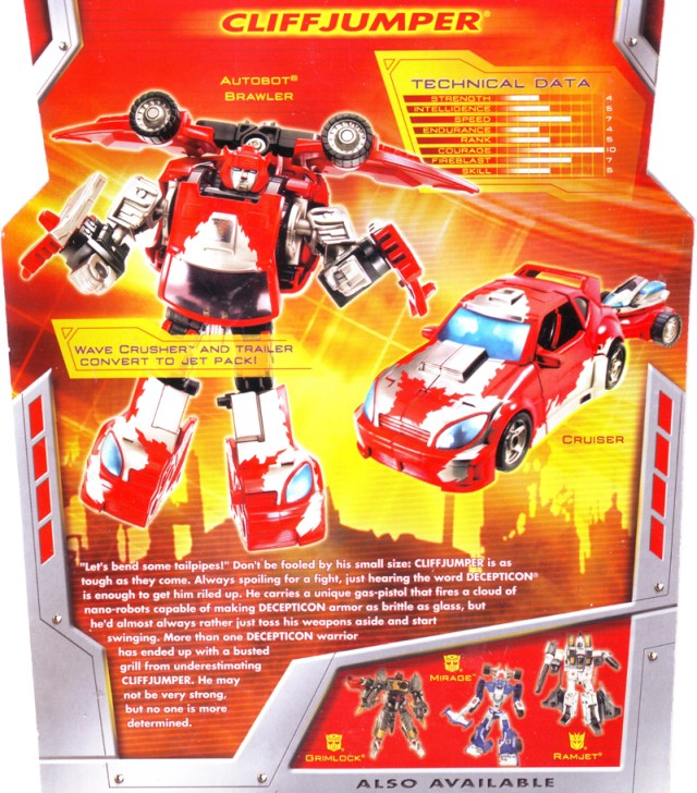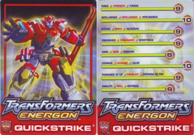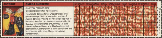 This became the new formula for their bastardized Tech Specs for a good long while. Movie, Revenge of the Fallen, RPM’s, 2010, Generations, Speed Stars, Prime, and Dark of the Moon all used this formula, though towards the end, they made it worse by putting the ratings on the bubble insert or box flaps just to piss me off. (Okay, maybe that wasn’t why, but it certainly had that affect.)