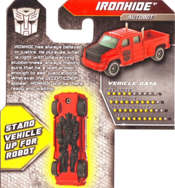 The last toys released in RID used the upcoming (they might have already started coming out, it’s been a long time, and I don’t remember for sure) Armada package design and had no tech specs at all. Nothing. We got a sticker with nothing on the back. Meanwhile…