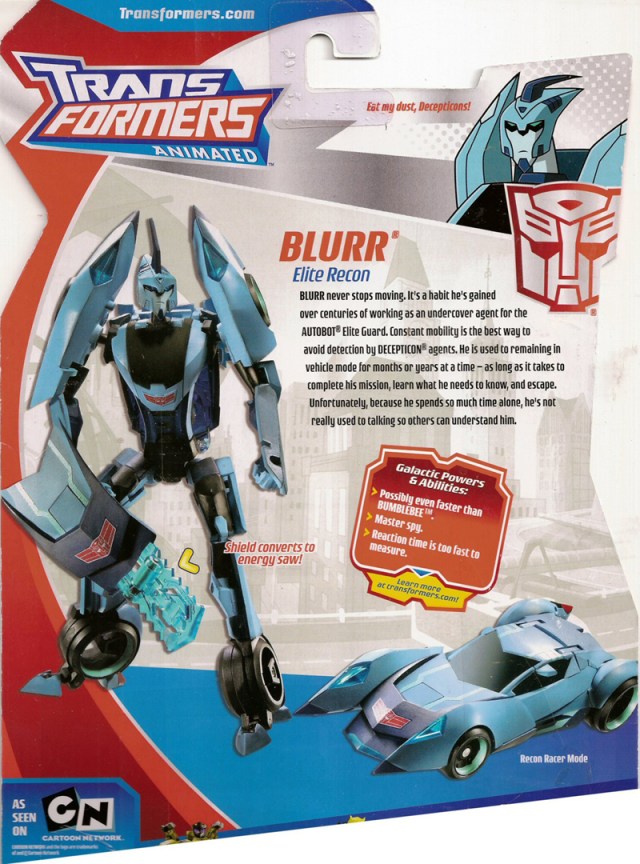 Some Cybertron toys had, more or less, Tech Specs, no art/photo, Function, or Quote, but we got readings and a bio. There was no more Clip and Save though, and not all toys were the same.