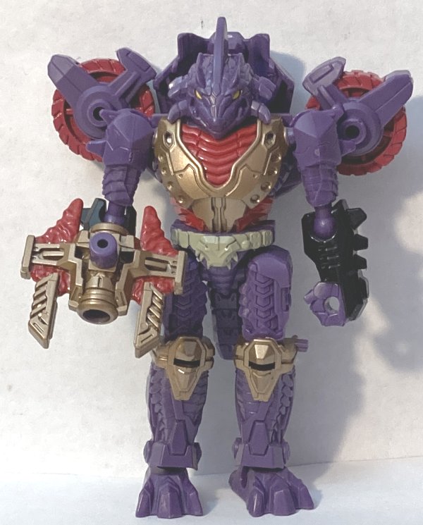 Iguanus is an enormous improvement over Hasbro’s previous attempt at giving us Pretenders, though my issues with those was mostly with the heads. Unfortunate that they couldn’t give us real Pretenders, shell and all, but such as life. I am told that Iguanus actually fits in his original G1 shell, and if that is by design and not an accident, then I give Hasbro all the credit for that. If the next Pretender doesn’t fit we’ll know it was an accident. As to the toy, he is pretty darn awesome. His motorcycle mode is great. The original toy didn’t really look like anything, just a robot being folded into something, and he gives that impression, while at the same time being better than the G1 Pretender robot vehicle modes. In robot mode he looks just like the Pretender shell. Short of actually getting real Pretenders, this is a pretty great substitute, but only if they give us all of them. I get tired of them half-assing a series and only giving us some characters like they did with the Micromasters. Iguanus’s only real flaw is that he comes with a weapon that looks stupid. More on that later.