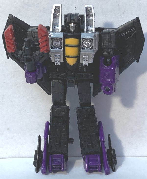 And as much credit as I give Hasbro for Iguanus, I have to take it all away and then some for Skywarp. How do you not include Skywarp’s correct weapons? What moron decided it was more important to include this stupid weapon that doesn’t look like anything instead of his real guns. It’s not like they don’t have them in the mold. Hasbro absolutely ruins toys with their garbage gimmick shit like they did making Targetmasters into Headmasters. Do the fucking toy right. That’s all most of us want. His paint job is fine, but I hate him for not having his weapons. How could they fuck up repainting an original three seeker? The incompetence is beyond unforgivable.