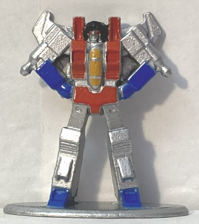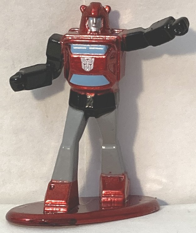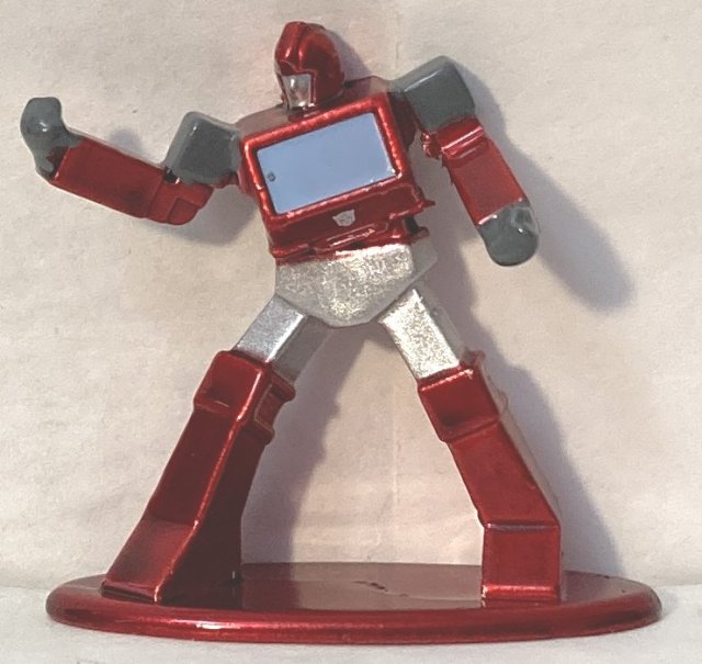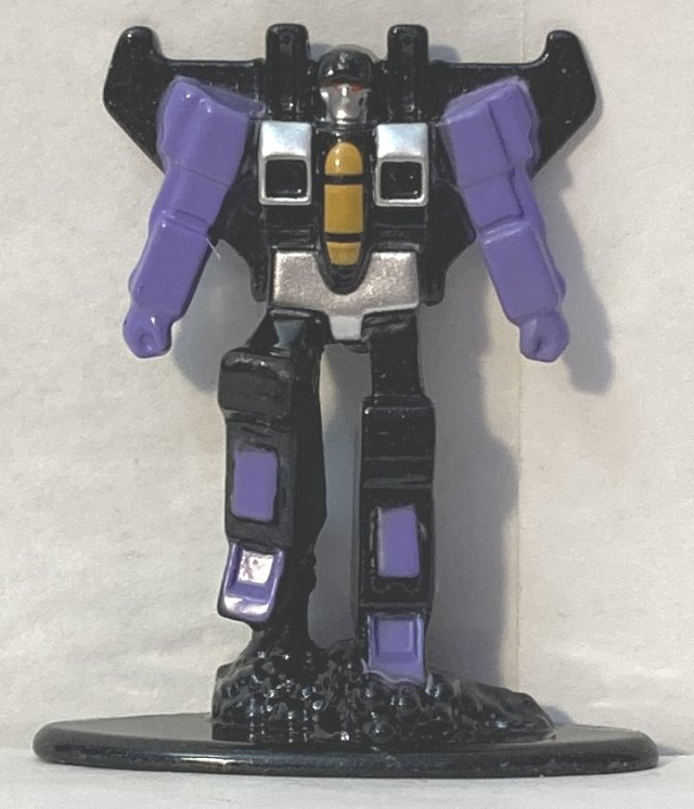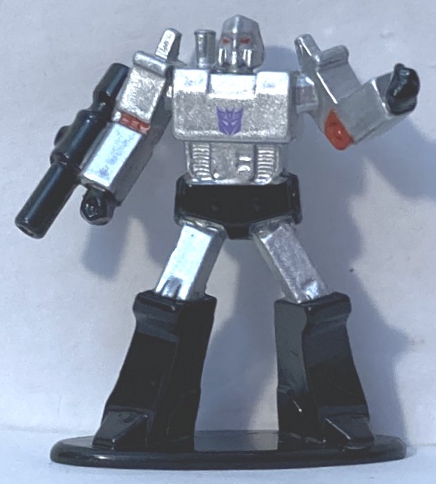 Jada items are released so sporadically and sometimes not for years after they are announced, if at all, that I didn’t actually expect to see this out so soon. It’s a cool set, though some of the paint jobs aren’t great, and some of the faces look melted. Some are missing needed details on their legs and feet. It’s cool that they are die cast, and I guess for the price we shouldn’t expect a lot, but I wish they had made better more detailed molds and painted them better. I’d have happily paid more for them if the quality was better. Walmart has the set at $12, but I think that’s a mistake and they are priced as if on clearance. Not sure what they would be at Target, I haven’t seen them there. There is a box variation, where they are package horizontally instead of vertically that I’ve seen online, but I don’t know where that is available. Also included are Autobot and Decepticon display backgrounds that you can cut from the back. It would have been nice if they had been punch out rather than having to cut them. Nothing more to say about the. Pics below.