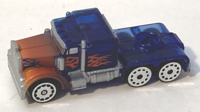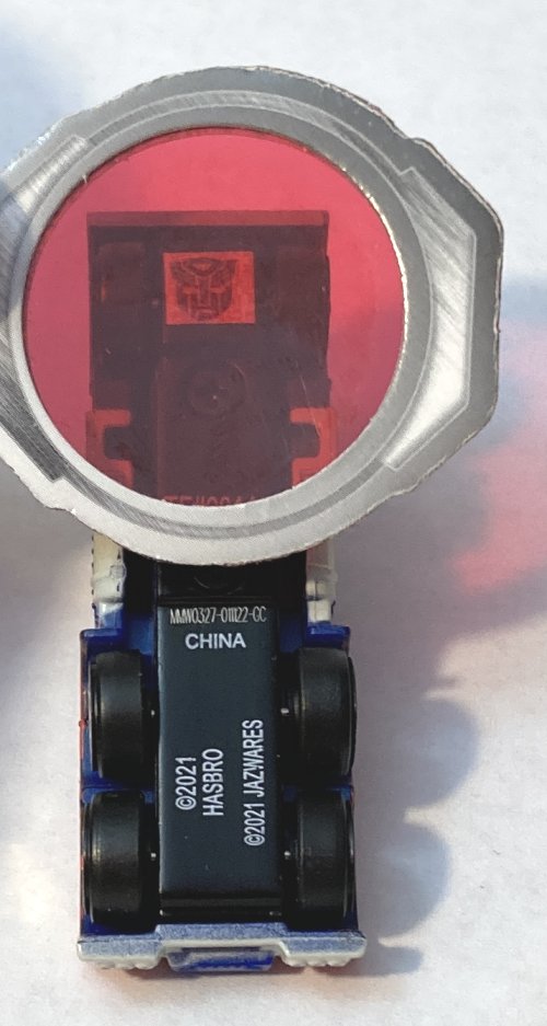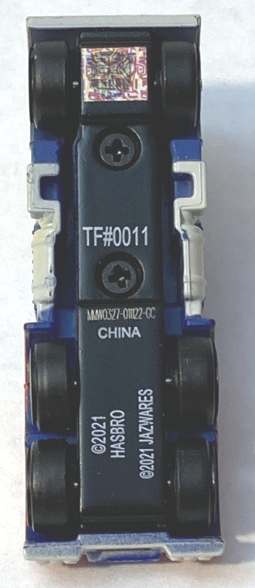 Optimus Prime is listed as a Chase figure. He seems to be one per case, like the rest are, from what I saw, but I can’t be 100% sure. It took me three Targets to find a full set, but I believe they all had Prime. He is cast in translucent blue plastic, so maybe that’s why he’s considered Chase. I don’t know. He comes with the same repair shop as Megatron, though for Optimus Prime it makes sense.