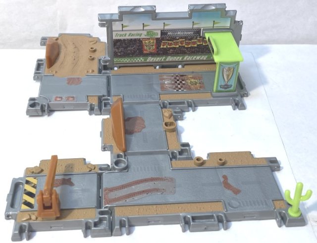 Cliffjumper is a repaint of Bumblebee. I kind of wish they had changed his stripes to differentiate him from Bumblebee. His playset is a desert race track.