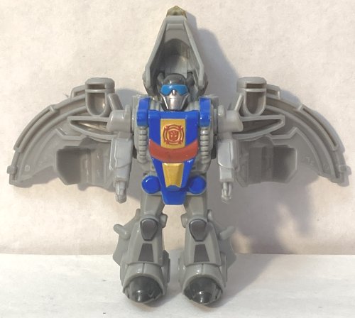 Swoop could have used some more paint apps on his wings, but he looks pretty good. Pressing a switch on his back makes his wings flap. Blades probably looks best in robot mode.