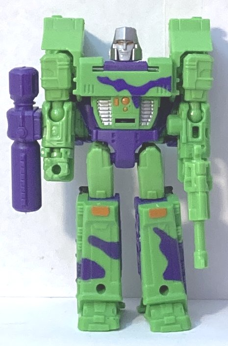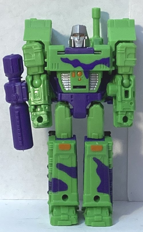 Shockwave looks awesome in robot mode, except that he has a particularly ridiculous weapon. In vehicle mode he is a space ship. He does have a peg that flips down so he can actually be a gun.