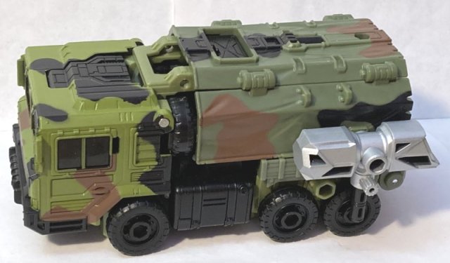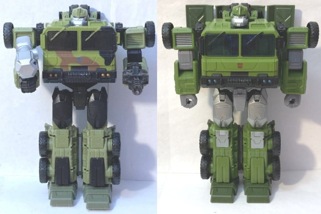 Bulkhead is now in a drabber green with camouflage markings. He looks great, but I would have preferred to see him be more different from the original. He now has a hammer accessory which is pretty cool. You can either put the hammer inside him or his other two weapons, but not all three.