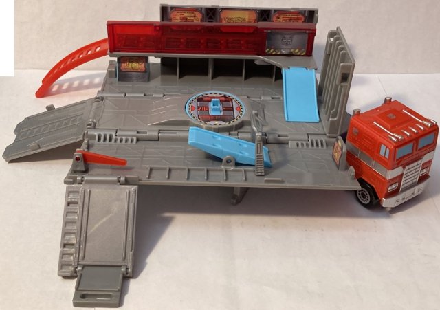 Playset Mode: His playset mode is far less detailed than the Bumblebee Playset, but it has the advantage of all the pieces fitting inside the trailer in vehicle mode.