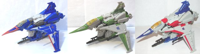 Overall: He is Thundercracker, so I guess he’s worth getting, assuming we’re going to get Skywarp. No point in hoping for Ramjet and Dirge. Given Thrust’s color scheme, they might be in pink and yellow.