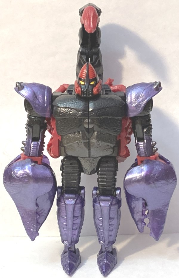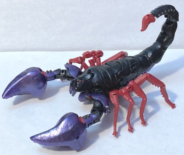 Scorponok is now sporting his toy colors, and he looks great. He comes with both heads. This is what having the multiple heads is for. The toy had a beast and robot head. I love this. Unfortunately, too many toys were already released without the additional heads. It’s nice to have this one, but they are a little late for it to matter.