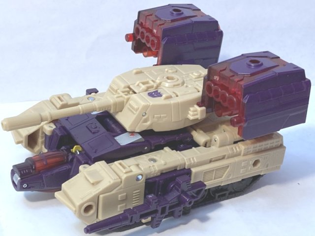 Tank Mode: Blitzwing’s tank mode is awesome. They did a fantastic job on him. The two first accessories, that I’ll talk more about later, look great as missile pods.