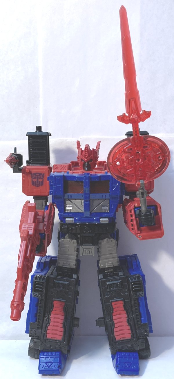 Ultra Magnus comes with two heads so he can be either a Diaclone Ultra Magnus or a Shattered Glass Ultra Magnus. I like the colors and I definitely prefer the Diaclone head rather than the Which King Ring Wraith head. He comes with Legacy Laser Optimus Prime’s weapons.