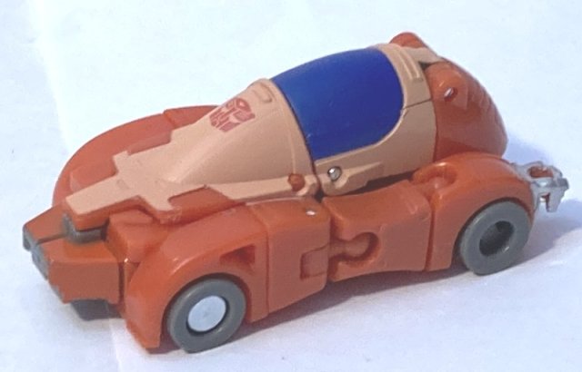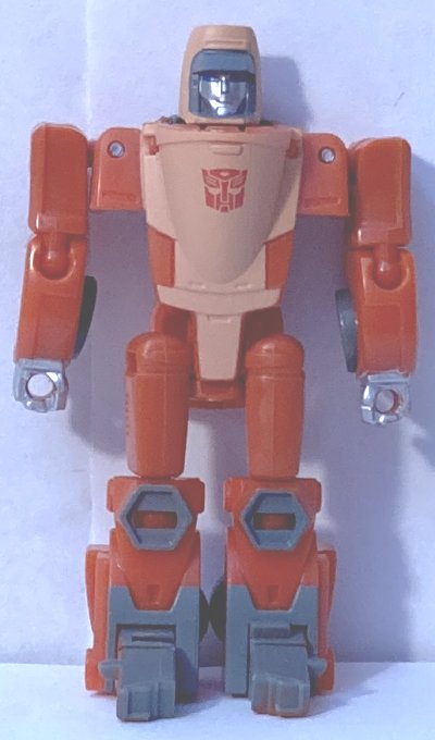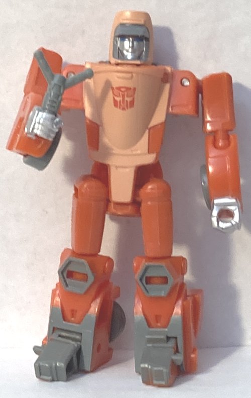 When I first saw pics of Wheelie, I didn’t like his vehicle mode at all. Now that I have him in hand, he’s growing on me. His robot mode is great, it’s just that big cockpit I don’t like. He should be more streamlined, though that may be my preference for the toy versus the animation.