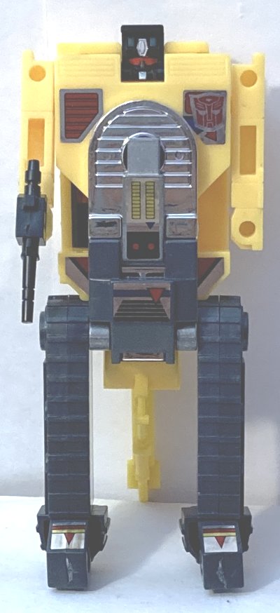 This set is awesome. I must admit, finding a G1 style G1 mold gift set on the shelf at Target made my G1-loving heart skip a beat. Makes me sad that they seem to be collecting dust of the shelves. He might be a little overpriced at $105, but Tonkanator is well worth it. All of the mold changes from the Vintage G1 Walmart reissue are present. Strangely, the set omits a part. Devastator is supposed to have two drills, one for Mega Dozer (Bonecrusher) and one for Power Digger (Scavenger), but the set only comes with one. The instructions show this being used for Power Digger. Mega Dozer is pictured with Motormix’s (Mixmaster) single missile. That works, but it’s odd they would leave out a piece like that. I’d love to hear the reason for this from Hasbro. They did go to the effort to change the instructions, so it’s wasn’t an accidental omission. To be clear, I don’t find this a major issue as I’m only going to display him combined anyway, but it is very strange. The yellow and black color scheme looks great on these guys. I am really impressed with this set. I still want a G2 yellow and G2 orange Devastator reissue. At least the molds are still around, but I’m not going to hold my breath.