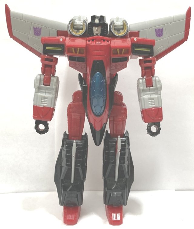 Vehicle Mode: I’ve never loved the Armada jets. The original molds weren’t bad, but they didn’t wow me. The best thing about them is they were big, and a Legacy Voyager is smaller than an Armada Deluxe (okay, maybe not, but it seems so). I hate that Starscream is not in correct Starscream colors. There was no reason for them to have done that, and yes, I’m still harping on that twenty years later. Having said that, he seems accurate to Armada Starscream to my memory. Some of his parts don’t clip in well, his legs tend to move out of position easily in jet mode.