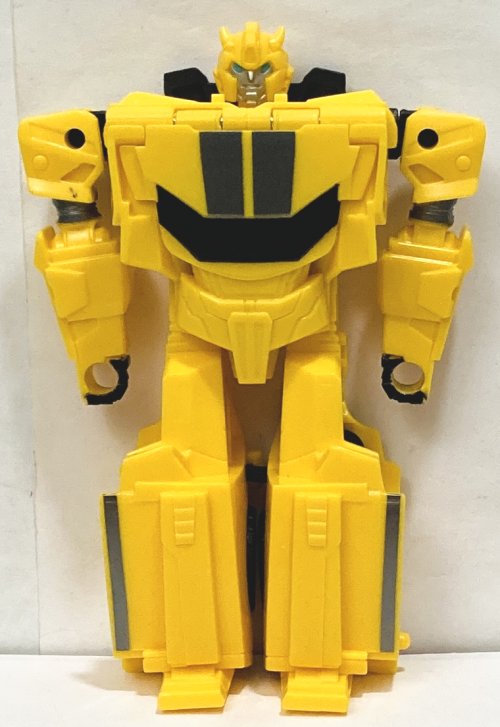 If I remember correctly, and it’s possible I don’t, the first Transformers One Step Changers debuted with Transformer Age of Extinction. After nearly a decade, Hasbro seems to have finally gotten it right. My big complaint about One Step Changers (or One Step Flip Changers, as they are now calling them) is that they don’t actually transform in one step, and even if they do in one direction, they don’t in the other. Well, it seems Hasbro has finally figured it out, because all of these do transform in one step. And even more than that, they are spring loaded and snap back to vehicle mode with the push of a button, which is very cool. Bumblebee looks pretty good in vehicle mode. He could certainly use more paint apps, but I think he has just enough to be passable. In robot mode Bumblebee looks great. I like the head sculpt. Paint apps are acceptable, but they really needed to paint his thighs black.