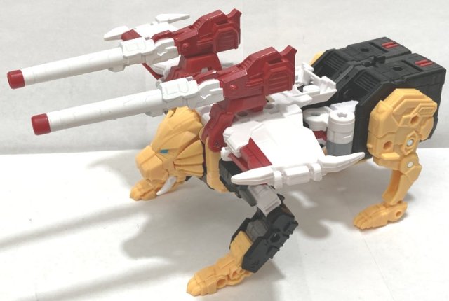 Vehicle Mode: In vehicle mode he looks like a folded up winged lion with guns on his back. Hey, even great toys can’t be perfect in every mode.