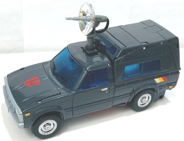 Vehicle Mode: Trailbreaker looks great in vehicle mode. You can swap out his silver grill for the more animation accurate gray. His side mirrors can be folded under his hood as they were not visible in the animation. He comes with the radar dish that he used in at least one episode.