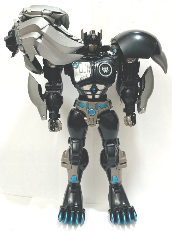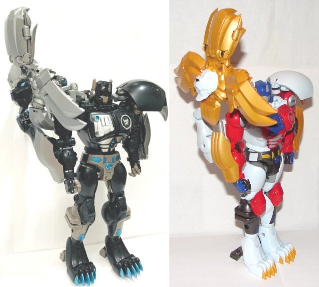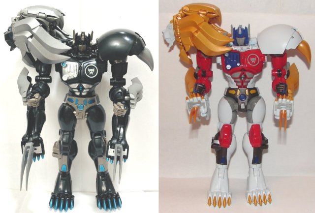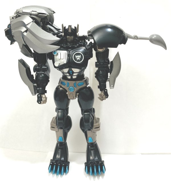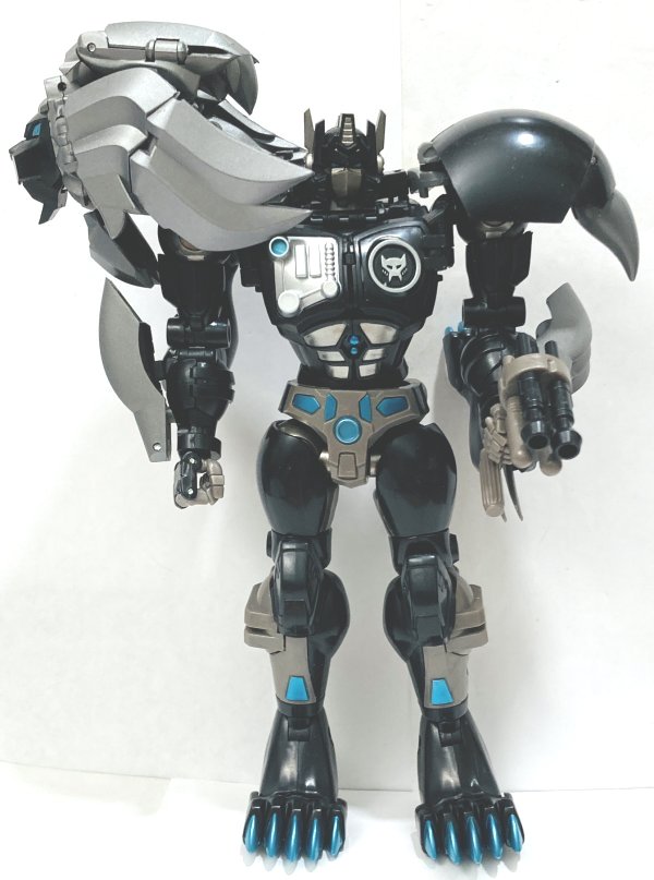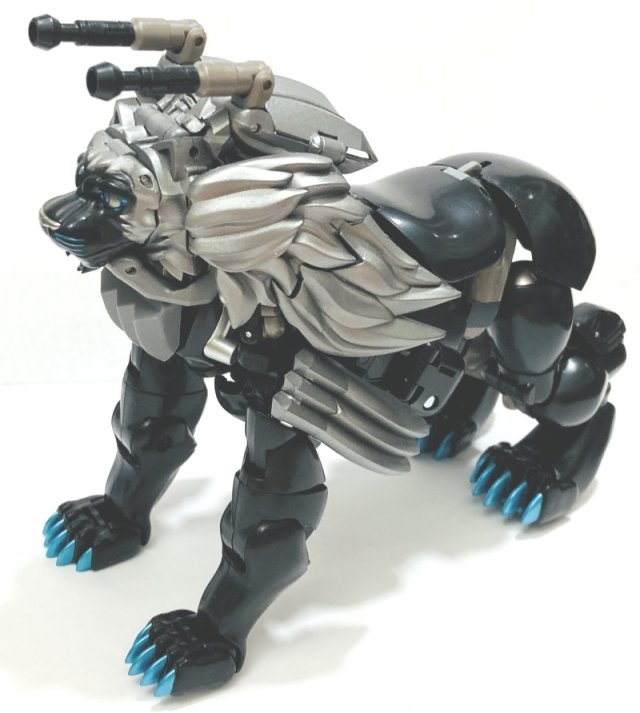 Lio Convoy has been repainted in black and silver and called Dark Amber LeoPrime. Last I checked, amber was not black nor was it silver, so I really don’t understand where the name comes from. I’m also confused as to why they changed him fro Lio to Leo and why there was a space between Lio and Convoy and no space between Leo and Prime. The original toy was repainted in black and silver and called Black Lio Convoy. No real logic I know of behind any of this. As to the toy, he’s now black and silver. How exciting.