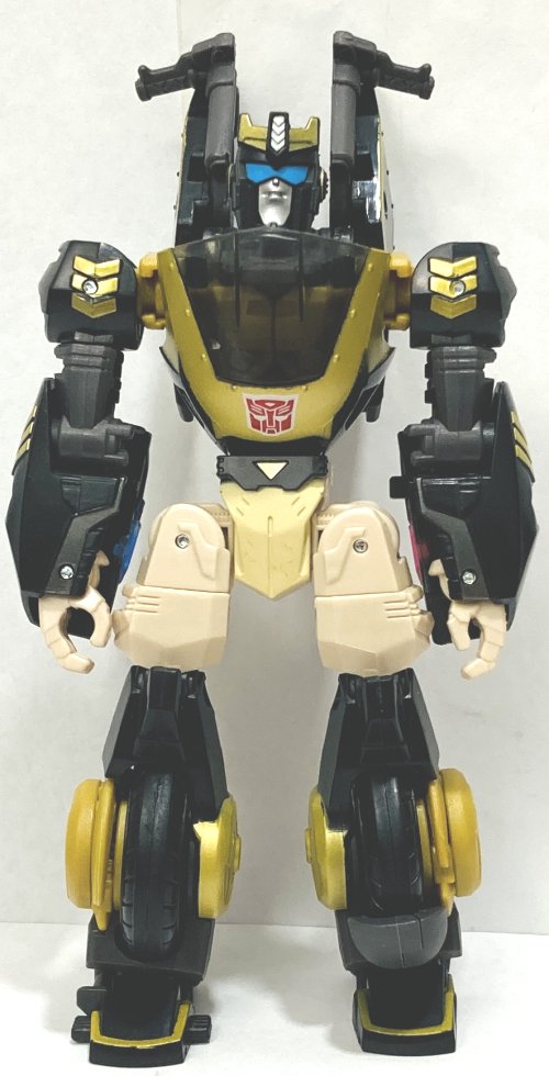 Robot Mode: Prowl looks great in robot mode. I love his head sculpt. He cannot hold onto his weapons very well, especially with his open hand.