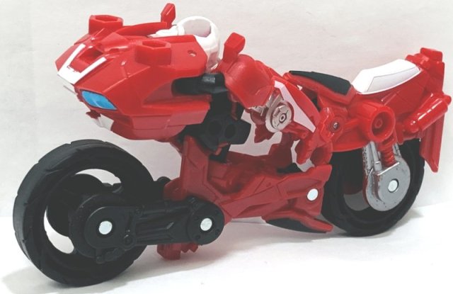 Arcee’s vehicle mode is okay, but the front wheel connects behind it rather than to the windscreen above. In robot mode she looks great, and has plenty of paint apps. I like her head sculpt.