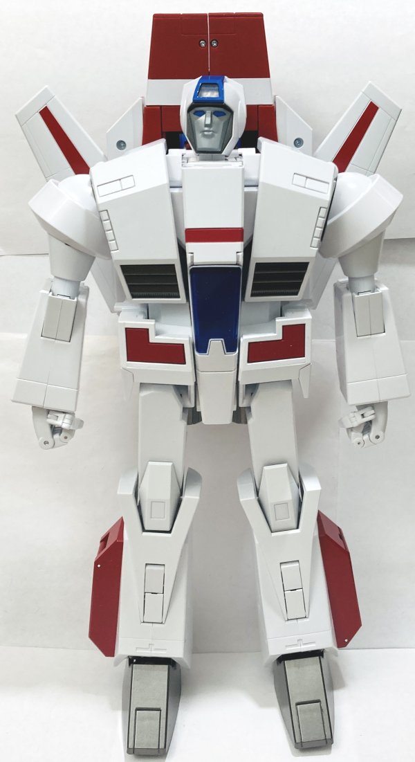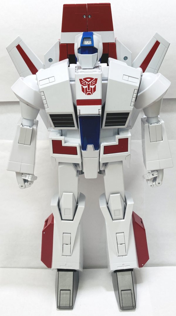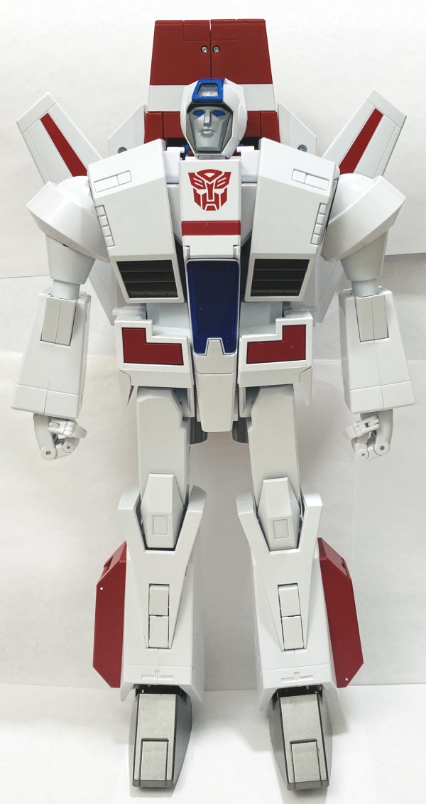 Overall: Skyfire is an absolute must have, though he is very expensive. He is worth the price, though I am a bit worried I’ll wake up one day to find that he’s tuned yellow. Hopefully they used higher quality plastic on him than on some other recent white plastic toys. Most Masterpiece toys get repainted, though Skyfire feels like one of the few that won’t be. However, while transforming him, I did have a thought. His rocket pack is two haves with a piece in the middle that folds up so you can close the two haves in robot mode to make it narrower. This gave me an idea. Could they do a remold of Skyfire as Jetfire? I know it’s unlikely, but hear me out. The backpack is two separate pieces already, so you could remold each side to be separate boosters. The top section in the middle, could easily be remolded to flip back and become the tail fins. Certainly his legs and arms could be remolded and his armor added. I think they could remold his chest. The question is, would they want to? I won’t hold my breath, but I could totally see it.