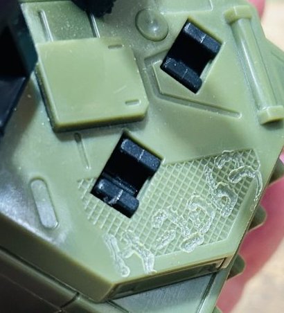 More Zabgoth’s Notes: The chest tampo on the Flak production sample is incomplete. The final release has a white outline.