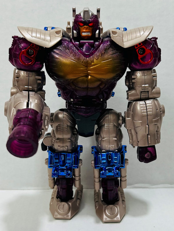 Beast Mode: Transmetal Mega Class Optimus Primal was one of the great toys of the Beast Wars era. He looks great in beast mode. Unlike the USA version that had his name on his chest, the Takara version says “Cybertron”.