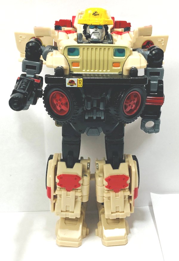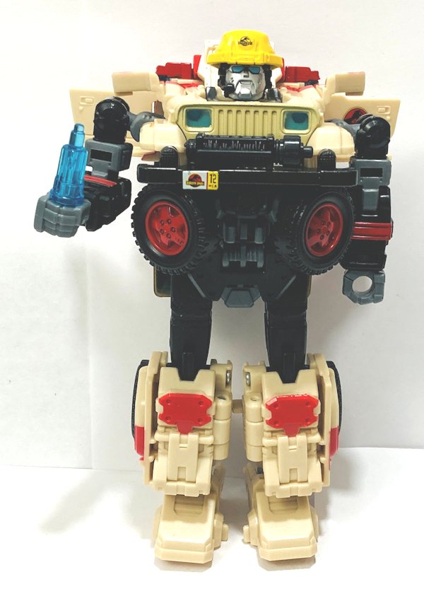 Robot Mode: JP12’s robot mode is based on Dennis Nedry, and he certainly looks the part. He includes the shaving cream can that was to be used to smuggle out the dinosaur embryos.