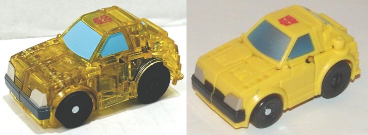 Bumblebee is cast in translucent yellow and black plastic. He looks especially nice in robot mode.