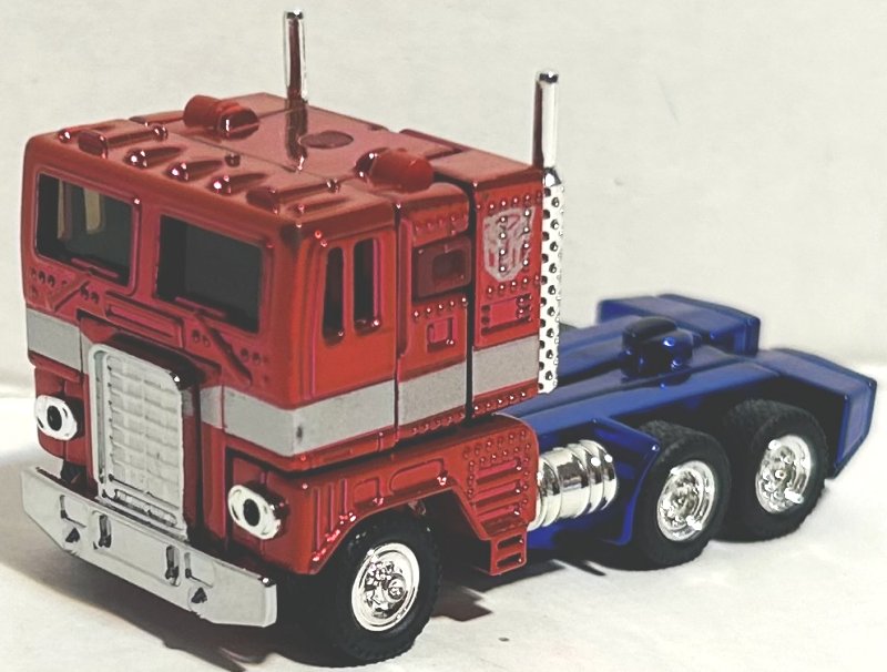 Vehicle Mode: In vehicle mode he is a perfect G1 Optimus Prime toy. The metallic paint and chrome looks great.